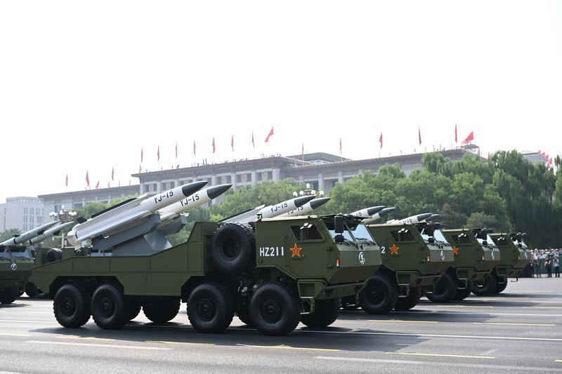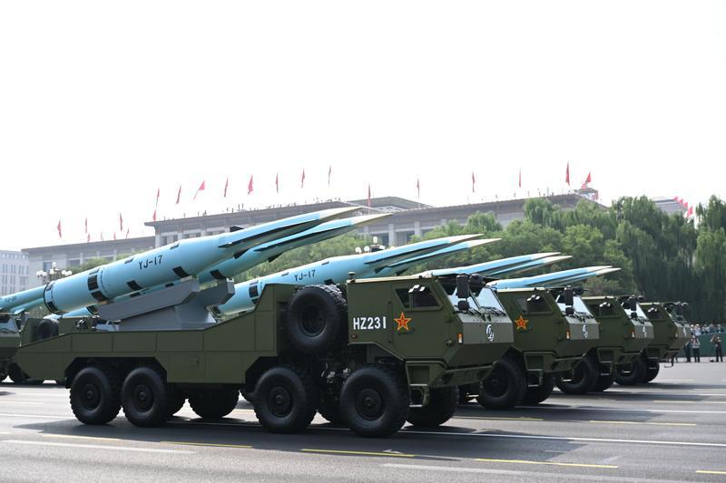 9月3日,紀(jì)念中國人民抗日戰(zhàn)爭暨世界反法西斯戰(zhàn)爭勝利80周年大會在北京隆重舉行。這是反艦導(dǎo)彈方隊接受檢閱。