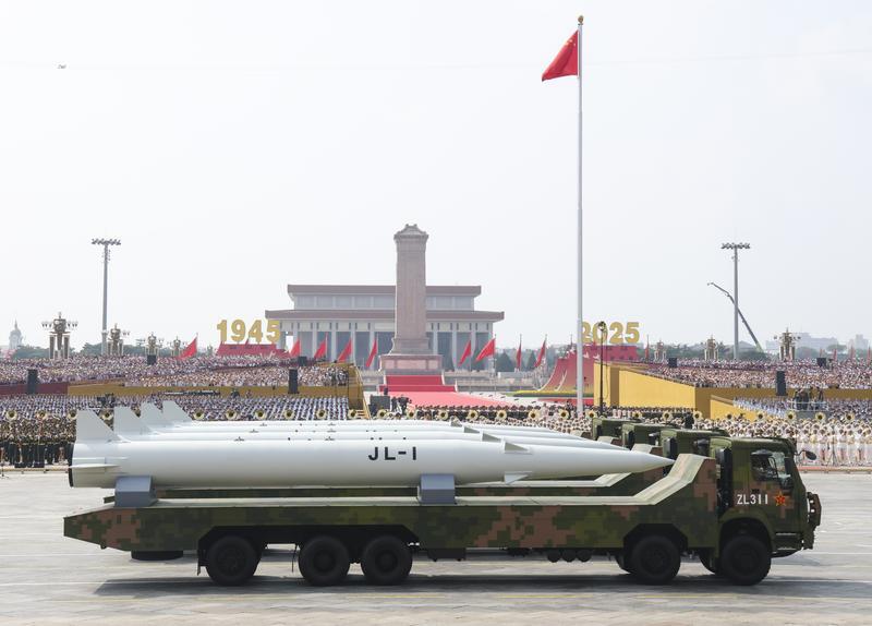 9月3日,紀(jì)念中國人民抗日戰(zhàn)爭暨世界反法西斯戰(zhàn)爭勝利80周年大會在北京隆重舉行。這是核導(dǎo)彈第一方隊接受檢閱。