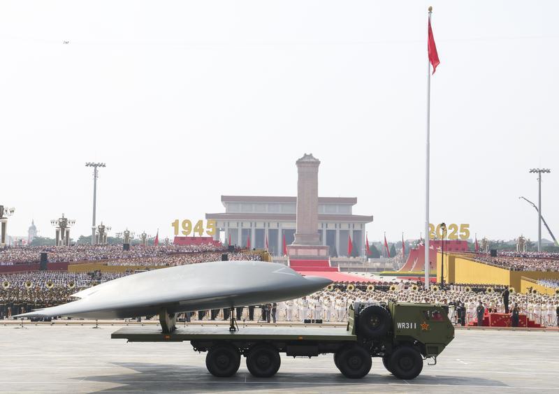 9月3日,紀(jì)念中國人民抗日戰(zhàn)爭暨世界反法西斯戰(zhàn)爭勝利80周年大會在北京隆重舉行。這是空中無人作戰(zhàn)方隊接受檢閱。