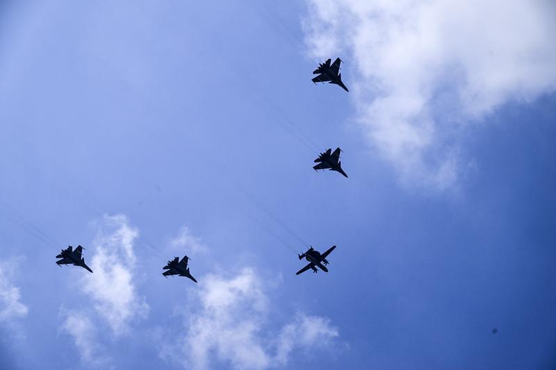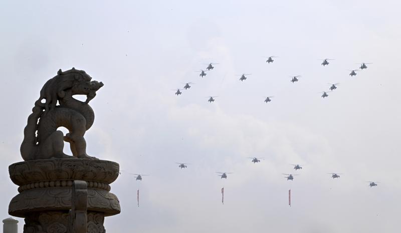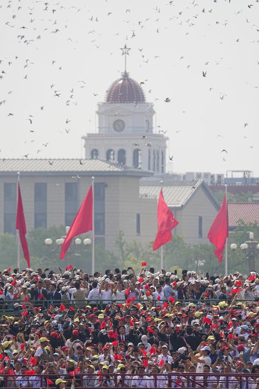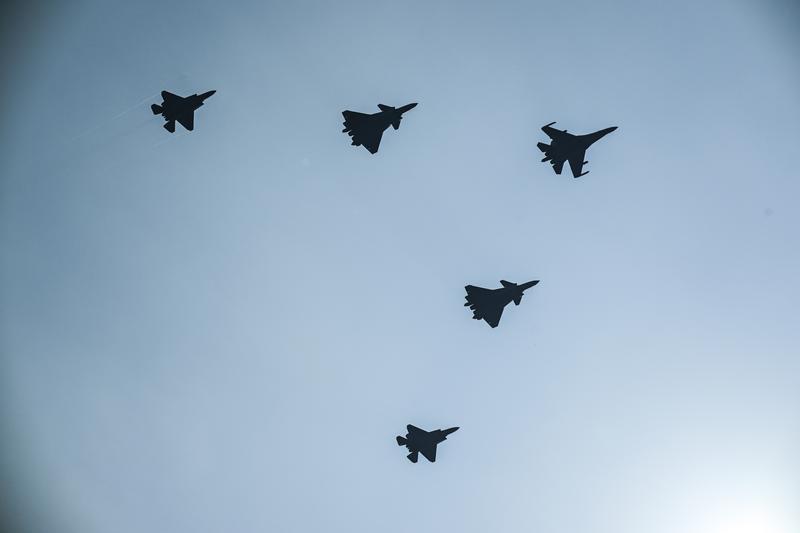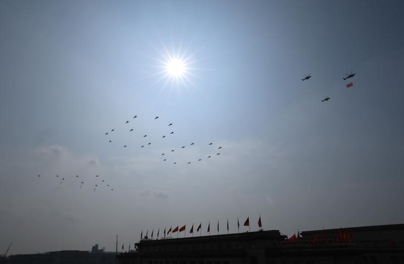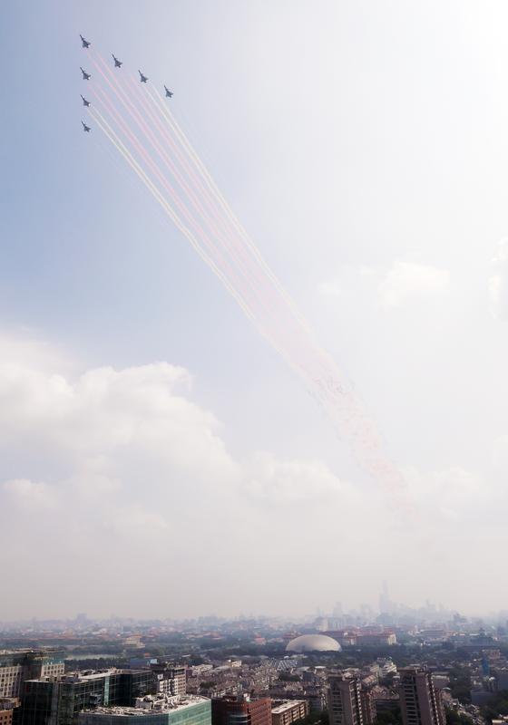 9月3日,紀(jì)念中國人民抗日戰(zhàn)爭暨世界反法西斯戰(zhàn)爭勝利80周年大會在北京隆重舉行。這是殲擊機(jī)梯隊接受檢閱。