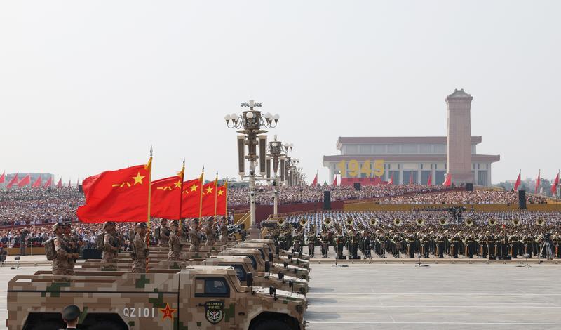 9月3日,紀(jì)念中國人民抗日戰(zhàn)爭暨世界反法西斯戰(zhàn)爭勝利80周年大會在北京隆重舉行。這是特種機(jī)梯隊接受檢閱。
