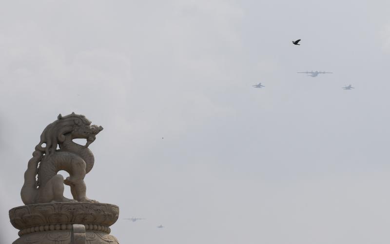 9月3日,紀(jì)念中國人民抗日戰(zhàn)爭暨世界反法西斯戰(zhàn)爭勝利80周年大會在北京隆重舉行。這是運(yùn)輸機(jī)梯隊接受檢閱。