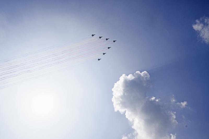 9月3日,紀(jì)念中國人民抗日戰(zhàn)爭暨世界反法西斯戰(zhàn)爭勝利80周年大會在北京隆重舉行。這是教練機(jī)梯隊接受檢閱。