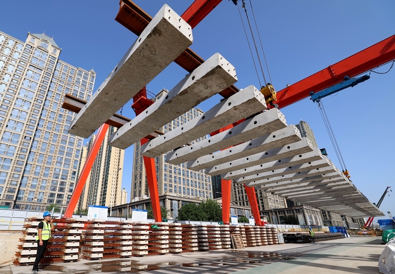 9月9日,工人在石家莊地鐵4號(hào)線一期工程?hào)|垣東路站建設(shè)工地施工。