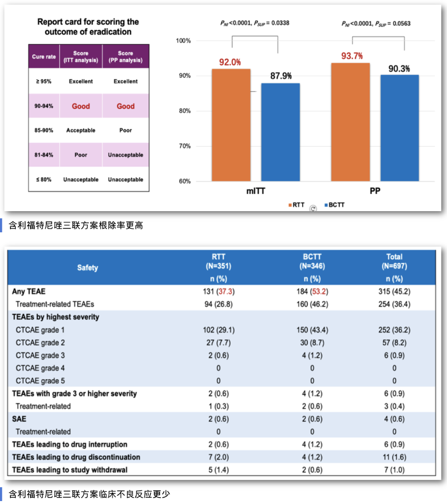 這項在中國開展的多中心、隨機、雙盲、陽性對照研究,納入700例幽門螺桿菌感染初治患者。宋志強介紹,利福特尼唑是我國自主研發(fā)的全球首創(chuàng)新型分子實體藥物,專門針對幽門螺桿菌感染研發(fā)。相關基礎和臨床研究結果均顯示,幽門螺桿菌對該藥物普遍敏感,最小抑菌濃度低,有效克服幽門螺桿菌高耐藥問題,而且表現(xiàn)出良好的安全性。