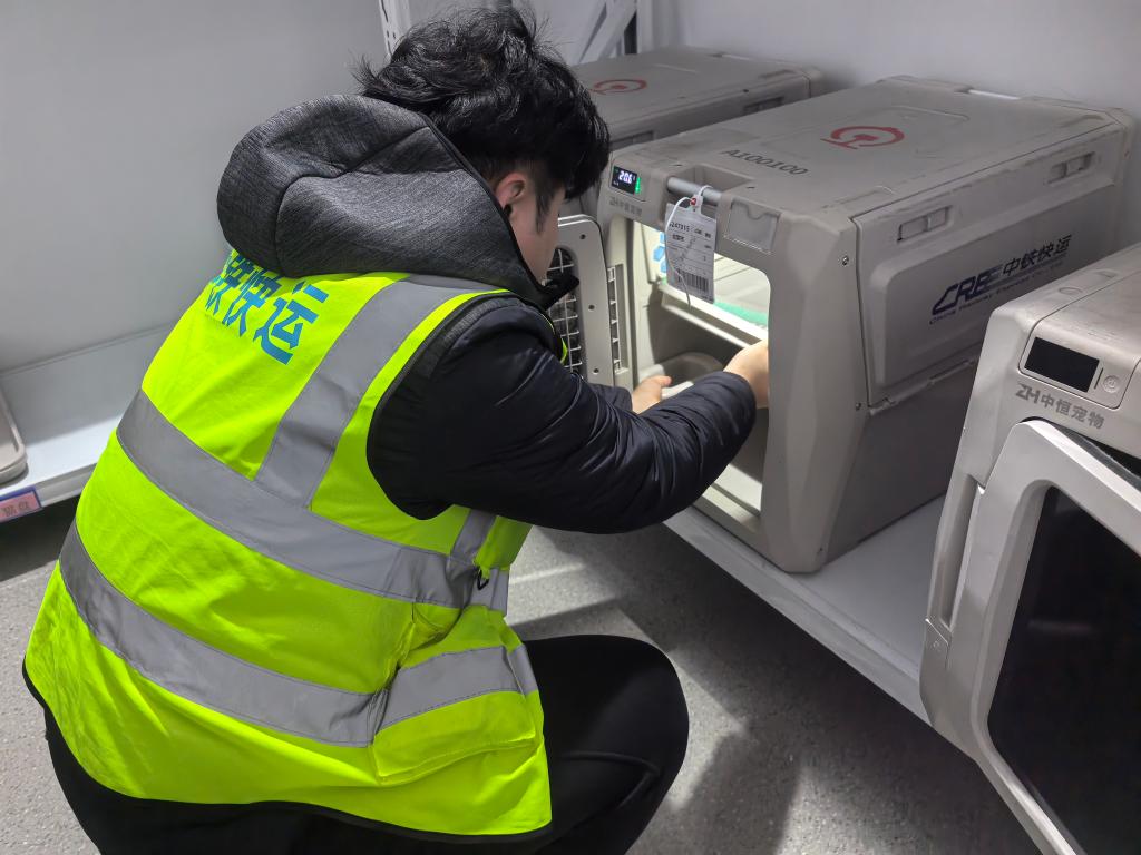 中鐵快運(yùn)太原南站營業(yè)部業(yè)務(wù)負(fù)責(zé)人武鑫介紹:“我們自今年10月啟動(dòng)高鐵寵物托運(yùn)服務(wù)試點(diǎn)以來,已經(jīng)托運(yùn)過寵物貓、寵物狗等。旅客可以在12306官方平臺(tái)或到營業(yè)部現(xiàn)場辦理托運(yùn)業(yè)務(wù)。托運(yùn)前,需要提交相關(guān)部門的檢疫證明。工作人員會(huì)對(duì)寵物運(yùn)輸箱和列車環(huán)境進(jìn)行嚴(yán)格消毒。寵物運(yùn)輸箱內(nèi)還帶有攝像頭,主人可以通過監(jiān)控查看自家寵物的實(shí)時(shí)狀態(tài)。我們配備的工作人員,也會(huì)定時(shí)檢查寵物狀態(tài),提供必要的安撫和飲水。”