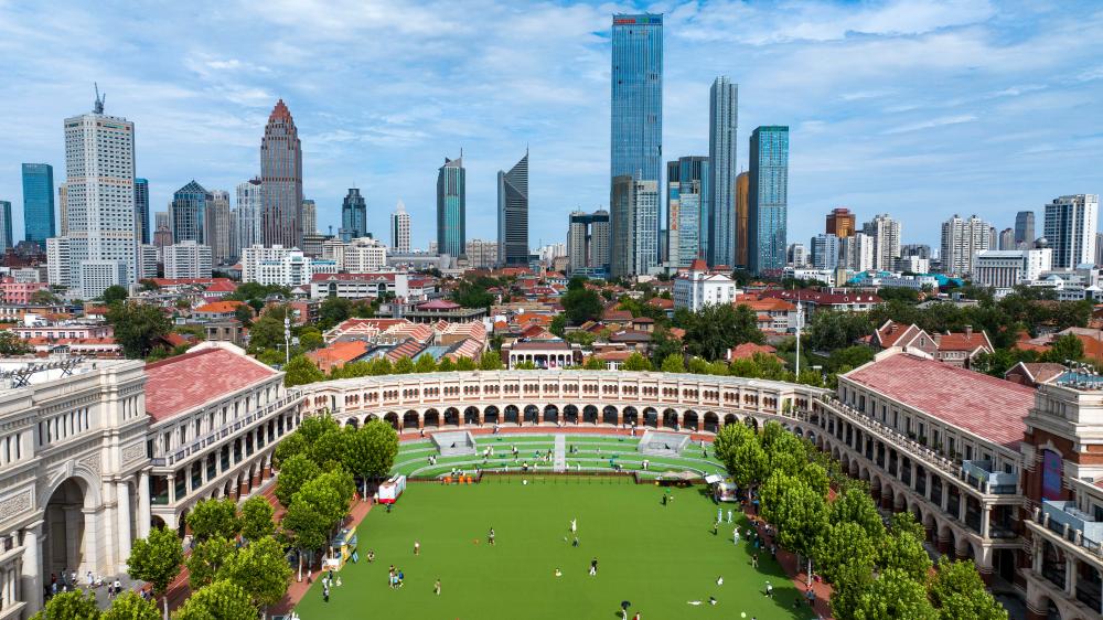 這是8月28日拍攝的位于天津五大道歷史文化街區(qū)的民園廣場(chǎng)(無人機(jī)照片)。新華社記者 趙子碩 攝