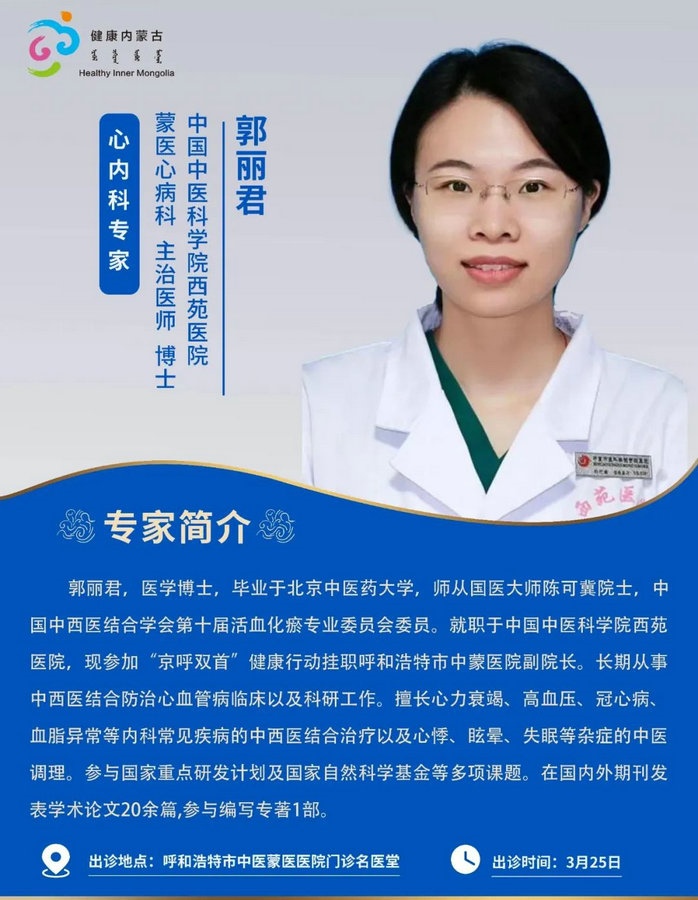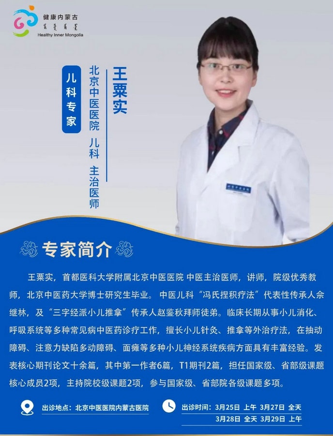 京蒙協(xié)作 政協(xié)助力。每周有北京相關(guān)協(xié)作醫(yī)院專家來呼和浩特出診,現(xiàn)將本周專家出診信息予以發(fā)布。