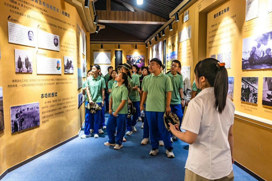 在寶日烏拉黨政機(jī)關(guān)舊址,同學(xué)們聆聽講解,了解“最好牧場(chǎng)為航天”的感人往事, 感受老一輩建設(shè)者們?cè)陲L(fēng)沙中對(duì)祖國(guó)的赤誠(chéng)。烏海市第十中學(xué)胡林濤說:“聽了‘最好牧場(chǎng)為航天’的故事,我真正懂得了什么是舍小家為國(guó)家。他們帶著牲畜離開世代生活的牧場(chǎng),沒有一句抱怨,眼里只有對(duì)國(guó)家的支持,這種家國(guó)情懷太打動(dòng)人了,以后我也要把這份擔(dān)當(dāng)記在心里,努力成為對(duì)國(guó)家有用的人?!?/p>