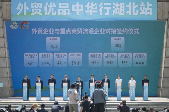 外貿(mào)優(yōu)品中華行湖北站暨“樂購湖北”消費季活動26日在武漢市漢口北國際貿(mào)易城啟動?;顒又荚诖蛟斐隹诋a(chǎn)品拓內(nèi)銷的標志性平臺,通過系列專題對接活動,助力外貿(mào)企業(yè)開拓國內(nèi)市場,促進消費升級。啟動儀式現(xiàn)場,京東集團、淘天集團、武商集團、武漢國貿(mào)集團等現(xiàn)場與益海嘉里食品營銷有限公司、東莞徐記食品有限公司等外貿(mào)出口企業(yè)簽訂出口轉(zhuǎn)內(nèi)銷采購協(xié)議、合作計劃,簽約金額145億元,為湖北外貿(mào)企業(yè)拓展內(nèi)需市場注入強勁動力。