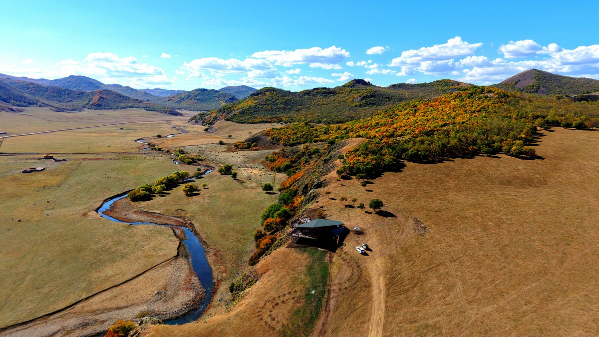 黑羊山旅游度假區(qū),海拔1319米,因這里的山形似黑羊頭得名。金秋時(shí)節(jié),整個(gè)景區(qū)被一片五彩斑斕的世界所籠罩,藍(lán)天、白云、溪流、牛羊群構(gòu)成一幅醉人的畫(huà)卷,恍若進(jìn)入童話世界。