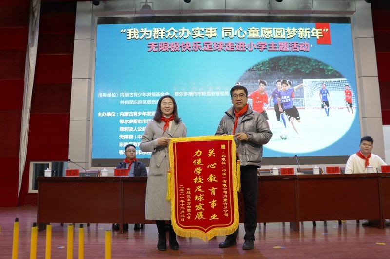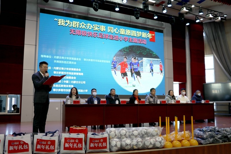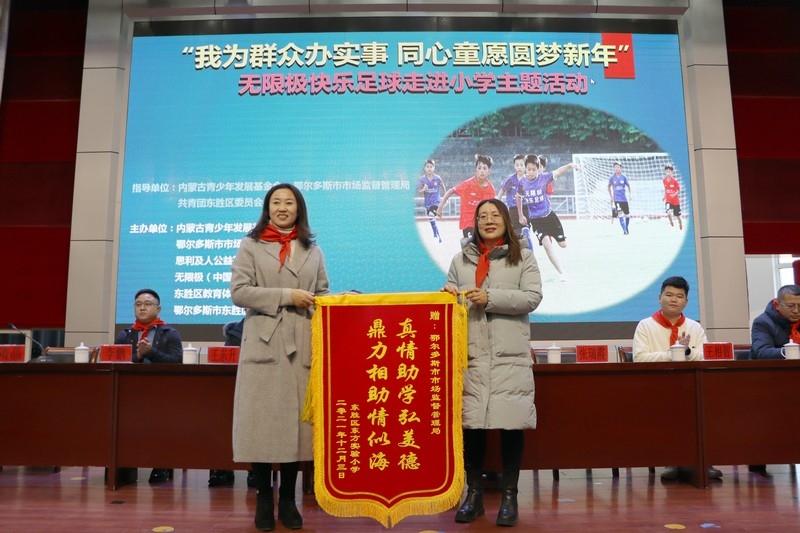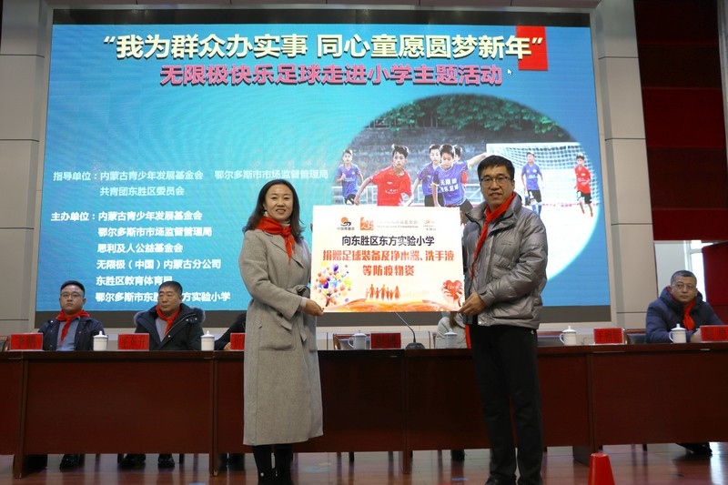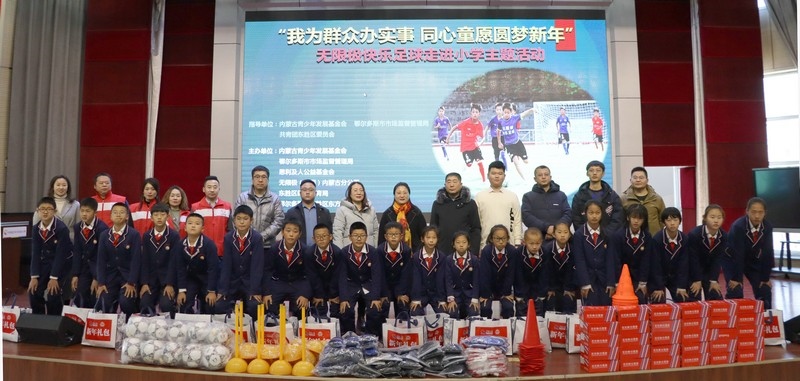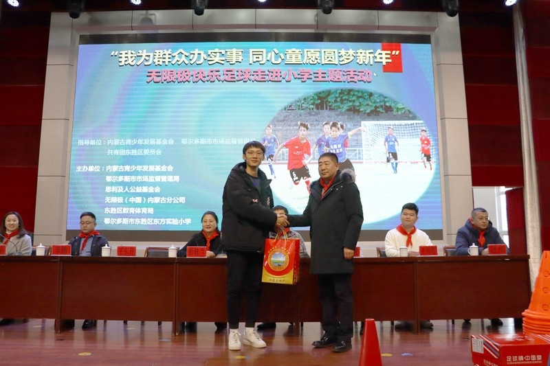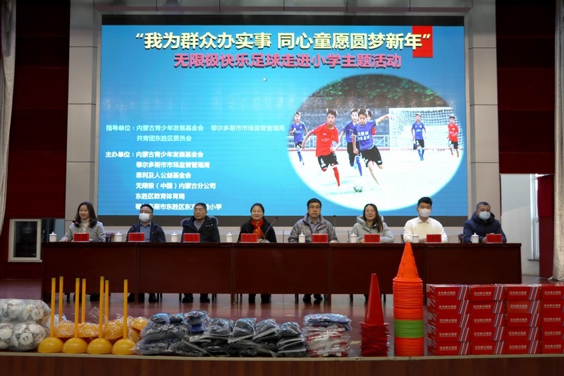 北疆新聞網(wǎng)、北疆新聞APP、北疆云消息 12月3日,思利及人公益基金會(huì)、無限極(中國)內(nèi)蒙古分公司攜手內(nèi)蒙古青少年發(fā)展基金會(huì)、鄂爾多斯市市場監(jiān)督管理局、共青團(tuán)東勝區(qū)委員會(huì)、東勝區(qū)教育體育局、無限極內(nèi)蒙古志愿者協(xié)會(huì)走進(jìn)內(nèi)蒙古鄂爾多斯市東勝區(qū)東方實(shí)驗(yàn)小學(xué),開展“我為群眾辦實(shí)事 同心童愿圓夢新年”無限極快樂足球慰問公益活動(dòng)。為學(xué)校的孩子們送上了一份特別的禮物,由“無限極快樂足球”公益項(xiàng)目提供的足球、球服、球鞋、繞桿、訓(xùn)練桶等足球裝備和訓(xùn)練器材。孩子們?cè)谑盏骄栀?zèng)后,露出開心燦爛的笑容。