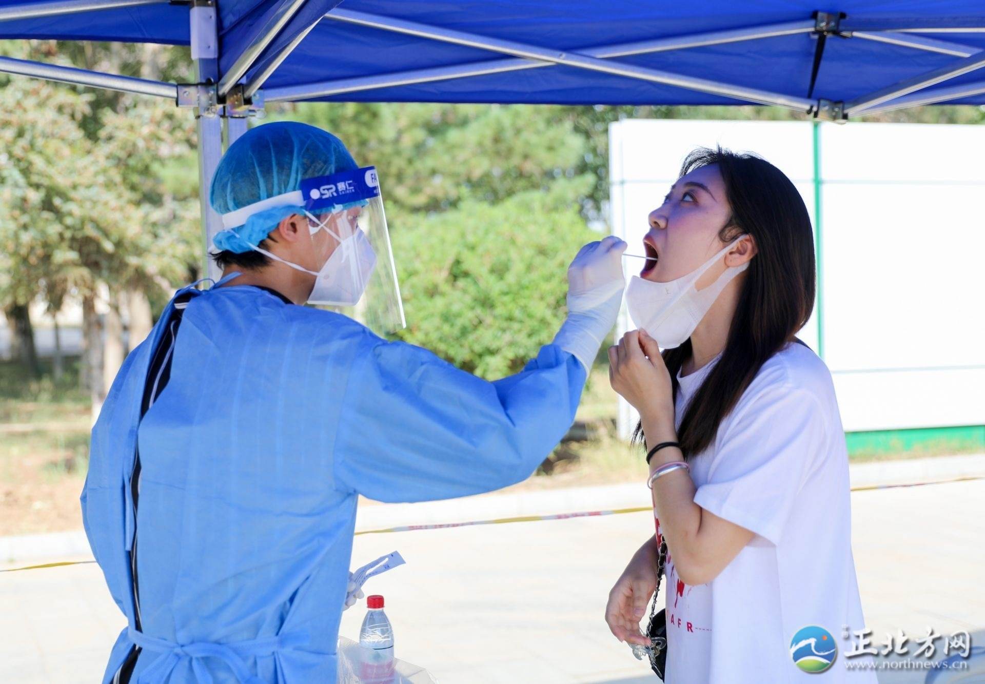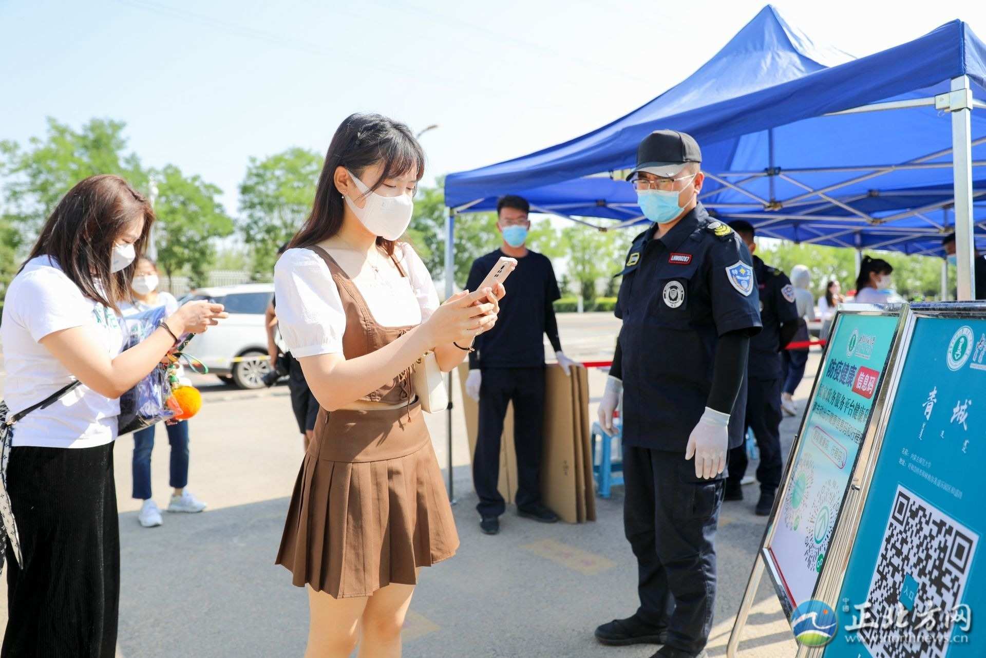 記者看到,在學(xué)校門口,學(xué)校設(shè)立了返校專用通道,核對信息、測溫、消毒、查看健康碼、行程碼和核酸檢測……返校學(xué)生佩戴著口罩正在按入校流程有序進入校園,工作人員不斷提醒學(xué)生注意保持一米安全距離。進入校園后,學(xué)生還需現(xiàn)場進行核酸檢測。