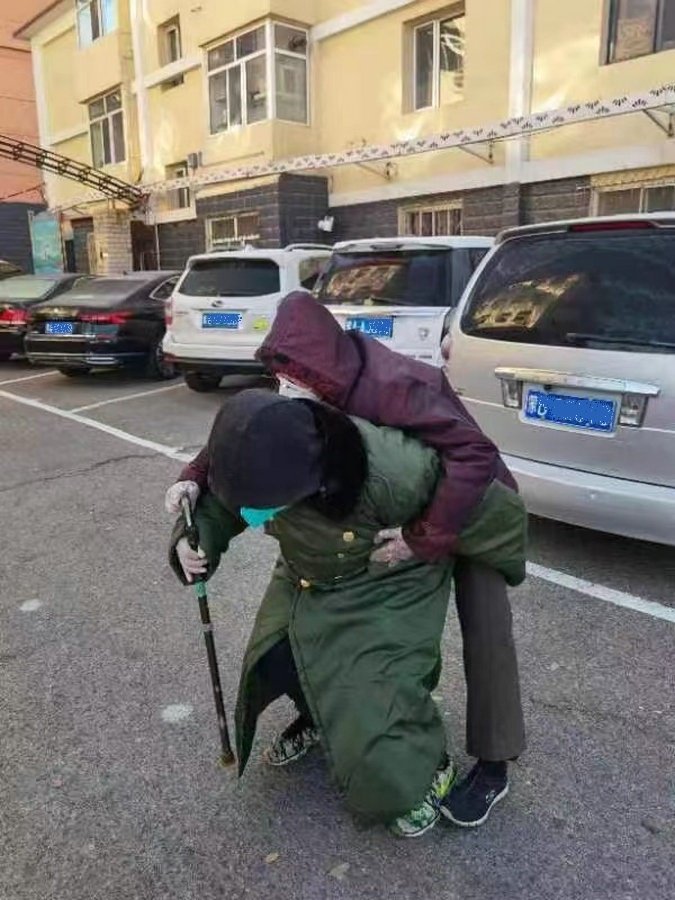 “還有一個老太太,剛做完手術時間不長,走路很慢,我就過去背上老人家去采集核酸?!睆垈フf,“不光張書府老人,我現(xiàn)在照顧著好幾個老人,都給他們留了電話,這些老人想吃什么菜了,會寫個單子聯(lián)系我,我會去給他們買回來。在這個小區(qū)里,有太多這樣的老人了,我們會盡自己所能,幫一個是一個?!?/p>