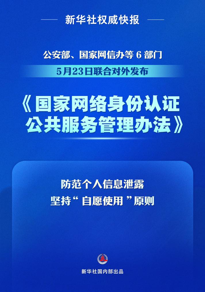 管理辦法將于7月15日起施行。公安部將聯(lián)合有關(guān)部門加大宣傳引導(dǎo)和推廣應(yīng)用力度,切實(shí)發(fā)揮國(guó)家網(wǎng)絡(luò)身份認(rèn)證公共服務(wù)的作用,拓展更多應(yīng)用場(chǎng)景。
