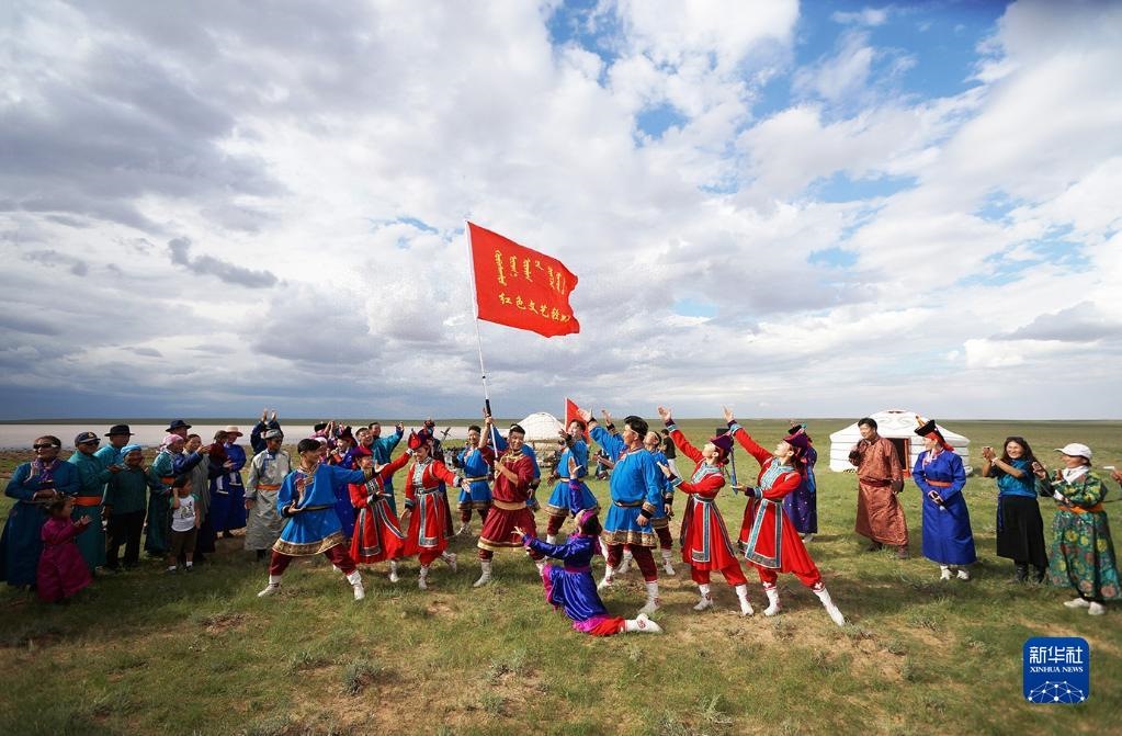 蔚藍(lán)的天空下,紫紅色的蒙古舞袍隨風(fēng)漫卷,馬頭琴琴聲悠揚飄蕩,內(nèi)蒙古的廣袤草原上,一支支烏蘭牧騎為群眾唱響動人牧歌。60多年來,烏蘭牧騎隊員們始終扎根生活沃土、服務(wù)牧民群眾。