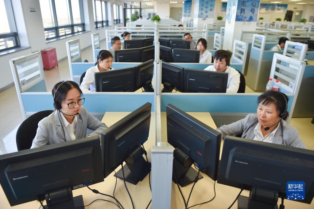 在位于北京亦莊的12345市民熱線(xiàn)話(huà)務(wù)大廳,工作人員接聽(tīng)熱線(xiàn)電話(huà)(2019年11月13日攝)。 新華社記者 彭子洋 攝