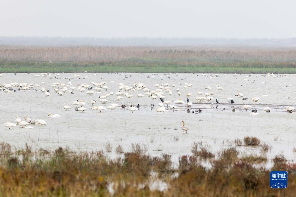 這是11月22日在上海崇明東灘鳥類國家級自然保護區(qū)拍攝的棲息的各種鳥類。新華社記者 王翔 攝