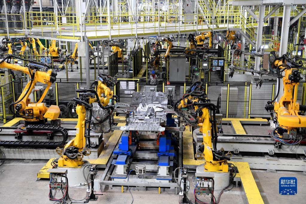 這是位于安徽省蕪湖市的奇瑞汽車智能網(wǎng)聯(lián)超級一工廠生產車間(11月9日攝)。新華社記者 劉軍喜 攝