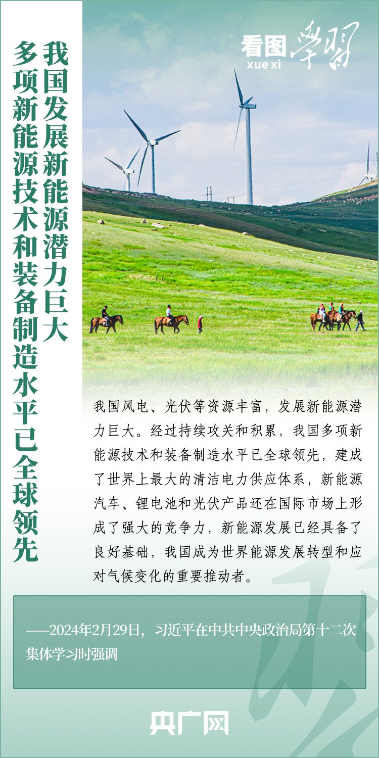 能源安全事關(guān)經(jīng)濟社會發(fā)展全局。2月29日,習近平總書記在中共中央政治局第十二次集體學習時強調(diào),我們要順勢而為、乘勢而上,以更大力度推動我國新能源高質(zhì)量發(fā)展,為中國式現(xiàn)代化建設提供安全可靠的能源保障,為共建清潔美麗的世界作出更大貢獻。一起來學習!