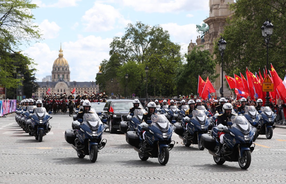 當(dāng)?shù)貢r間5月6日下午,正在法國進(jìn)行國事訪問的國家主席習(xí)近平在巴黎出席法國總統(tǒng)馬克龍舉行的隆重盛大歡迎儀式。這是歡迎儀式后,習(xí)近平和夫人彭麗媛在共和國衛(wèi)隊148名騎兵組成的禮兵馬隊和摩托車隊護(hù)衛(wèi)下,乘車前往愛麗舍宮。新華社記者 高靜 攝
