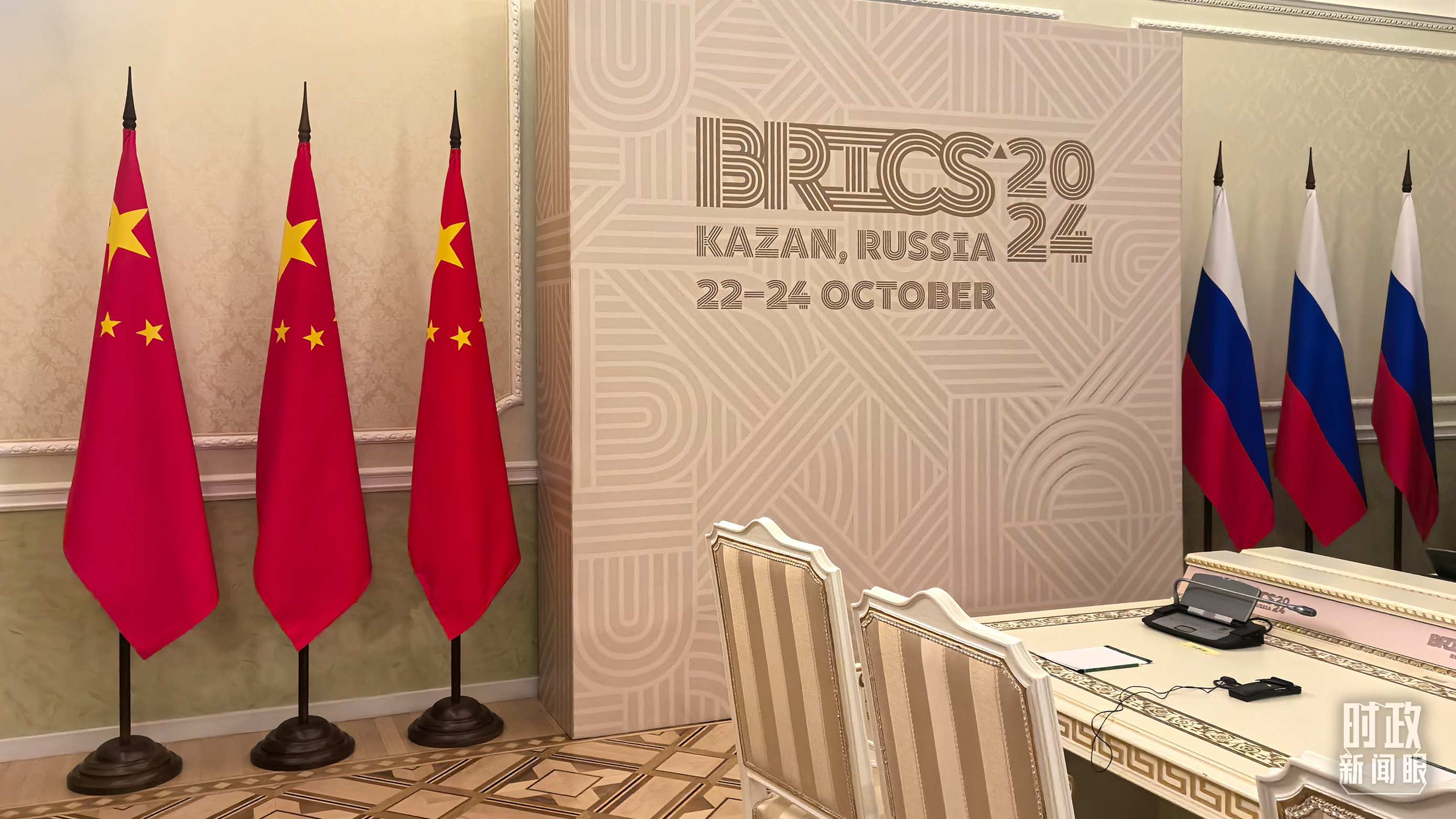 △ 中俄兩國元首喀山會晤開始前的現(xiàn)場。(總臺央視記者程鋮拍攝)