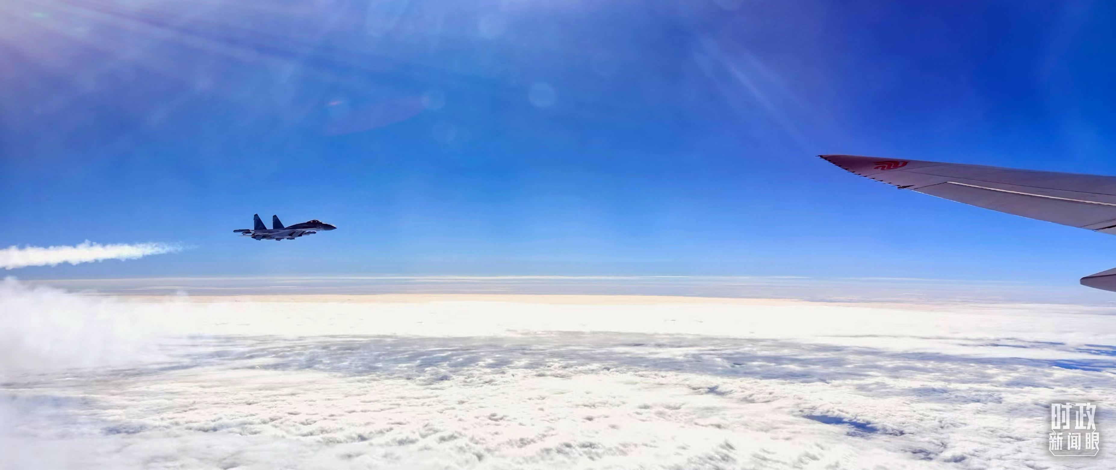 △ 習(xí)主席乘坐的專機進入俄羅斯領(lǐng)空時,俄空軍戰(zhàn)機升空護航。(總臺央視記者李錚拍攝)