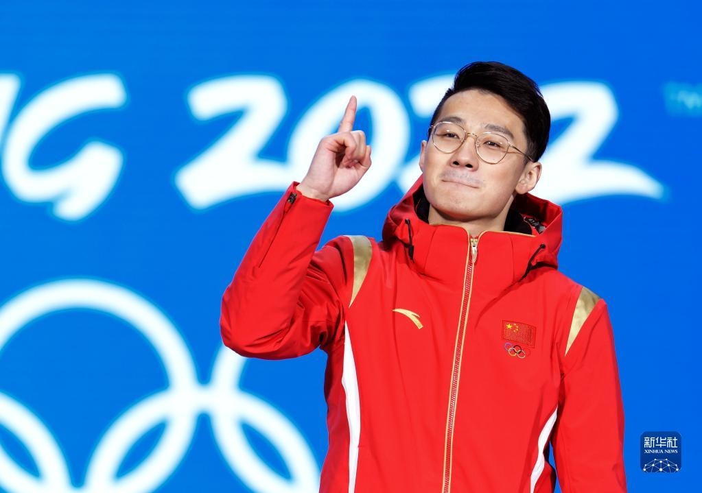 當日,北京2022年冬奧會短道速滑男子1000米獎牌頒發(fā)儀式在北京賽區(qū)頒獎廣場舉行。
