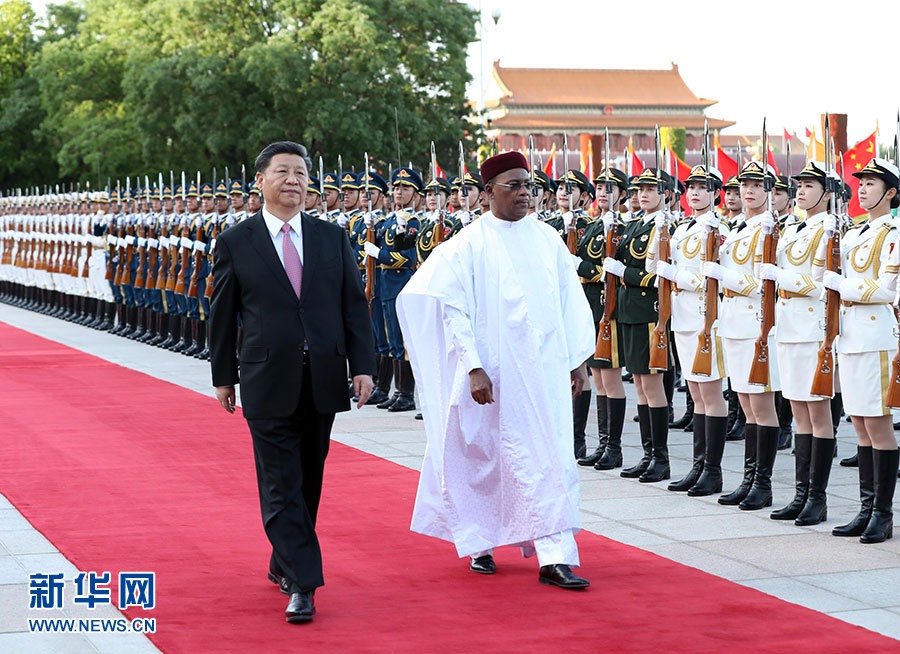 5月28日,國家主席習近平在北京人民大會堂同尼日爾總統(tǒng)伊素福舉行會談。這是會談前,習近平在人民大會堂東門外廣場為伊素福舉行歡迎儀式。
