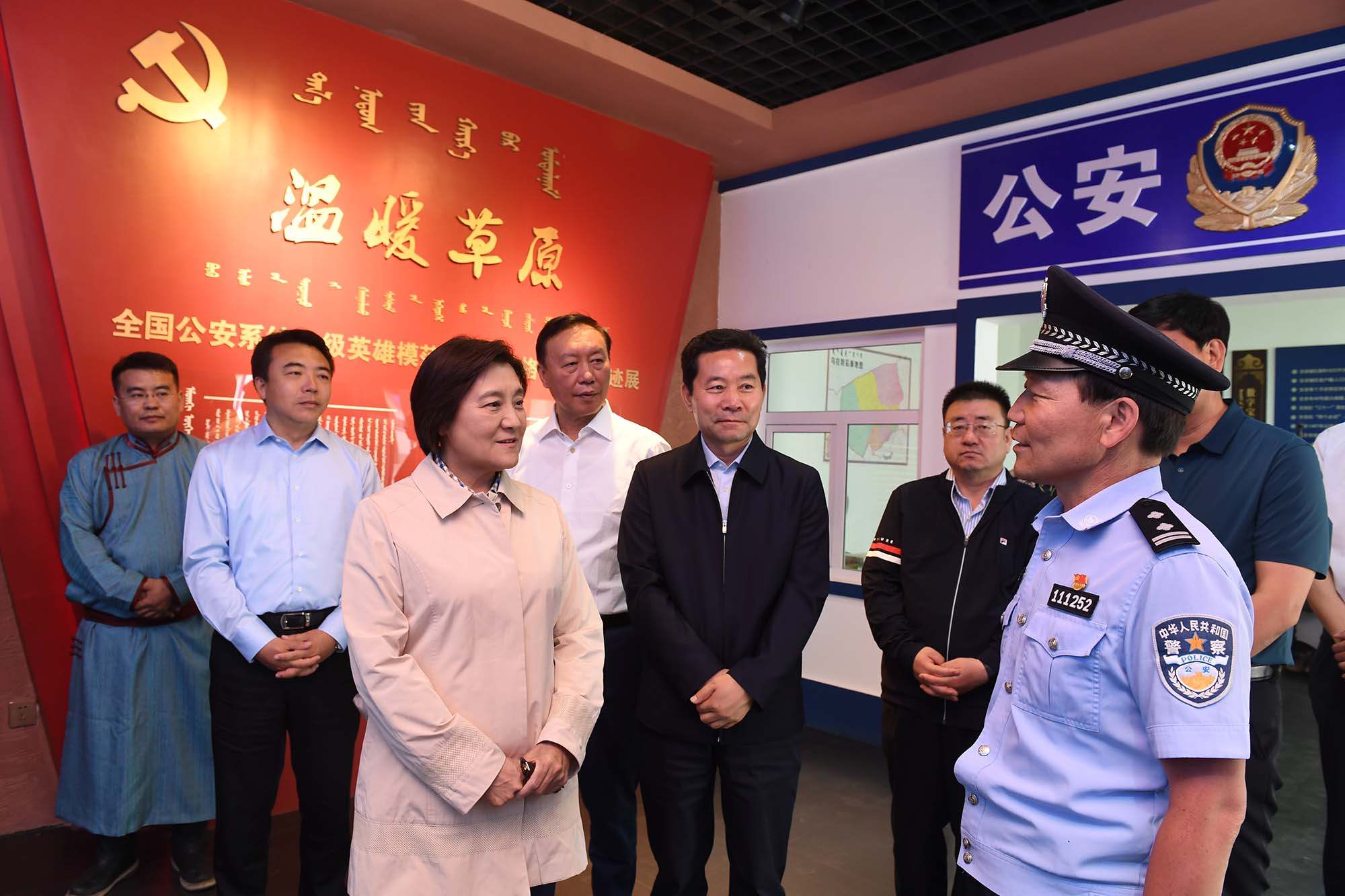 烏拉特后旗公安局潮格溫都爾鎮(zhèn)派出所民警寶音德力格爾被授予“全國(guó)公安系統(tǒng)一級(jí)英雄模范”榮譽(yù)稱號(hào)。布小林走進(jìn)寶音德力格爾事跡館參觀,與寶音德力格爾親切交談,對(duì)他舍小家顧大家、為人民群眾無私奉獻(xiàn)的精神給予充分肯定。