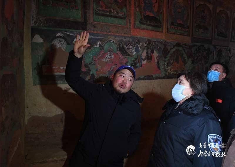 布小林沿著山體走進(jìn)石窟,察看壁畫現(xiàn)存狀況,了解石窟保護(hù)修復(fù)、學(xué)術(shù)研究以及遺址保護(hù)規(guī)劃和方案制定情況,要求對阿爾寨石窟實施整體保護(hù),做好考古發(fā)掘研究,挖掘其文化內(nèi)涵,發(fā)揮石窟的歷史文化價值。