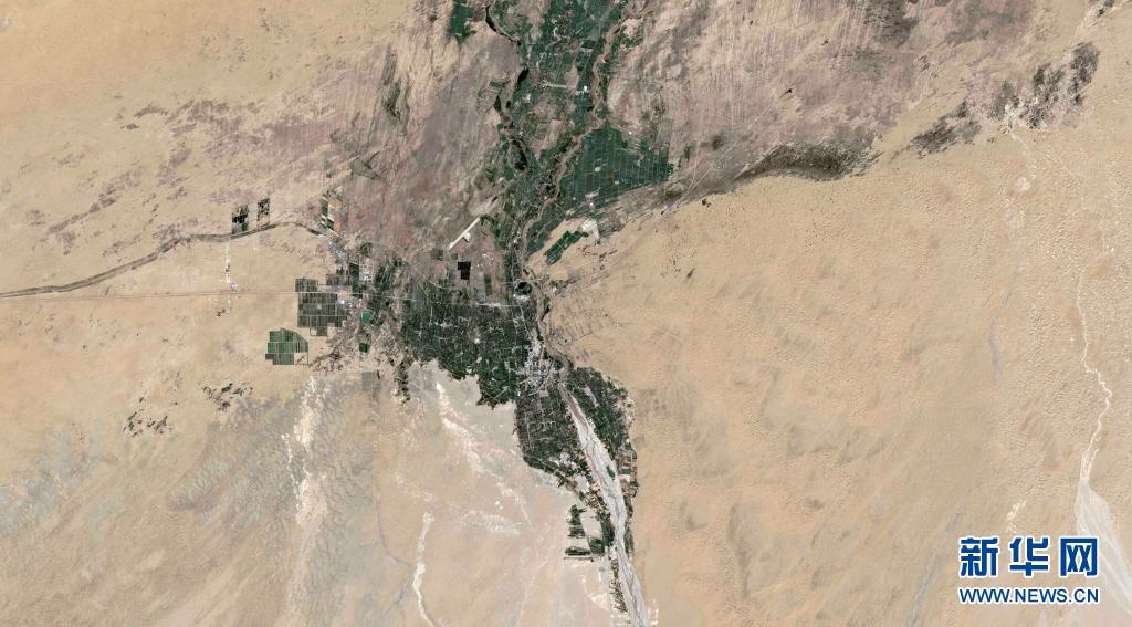 這是新疆且末縣河?xùn)|治沙站的衛(wèi)星圖片。新華社發(fā)(新華社衛(wèi)星新聞實驗室、瞭望數(shù)據(jù)媒體實驗室聯(lián)合供圖)
