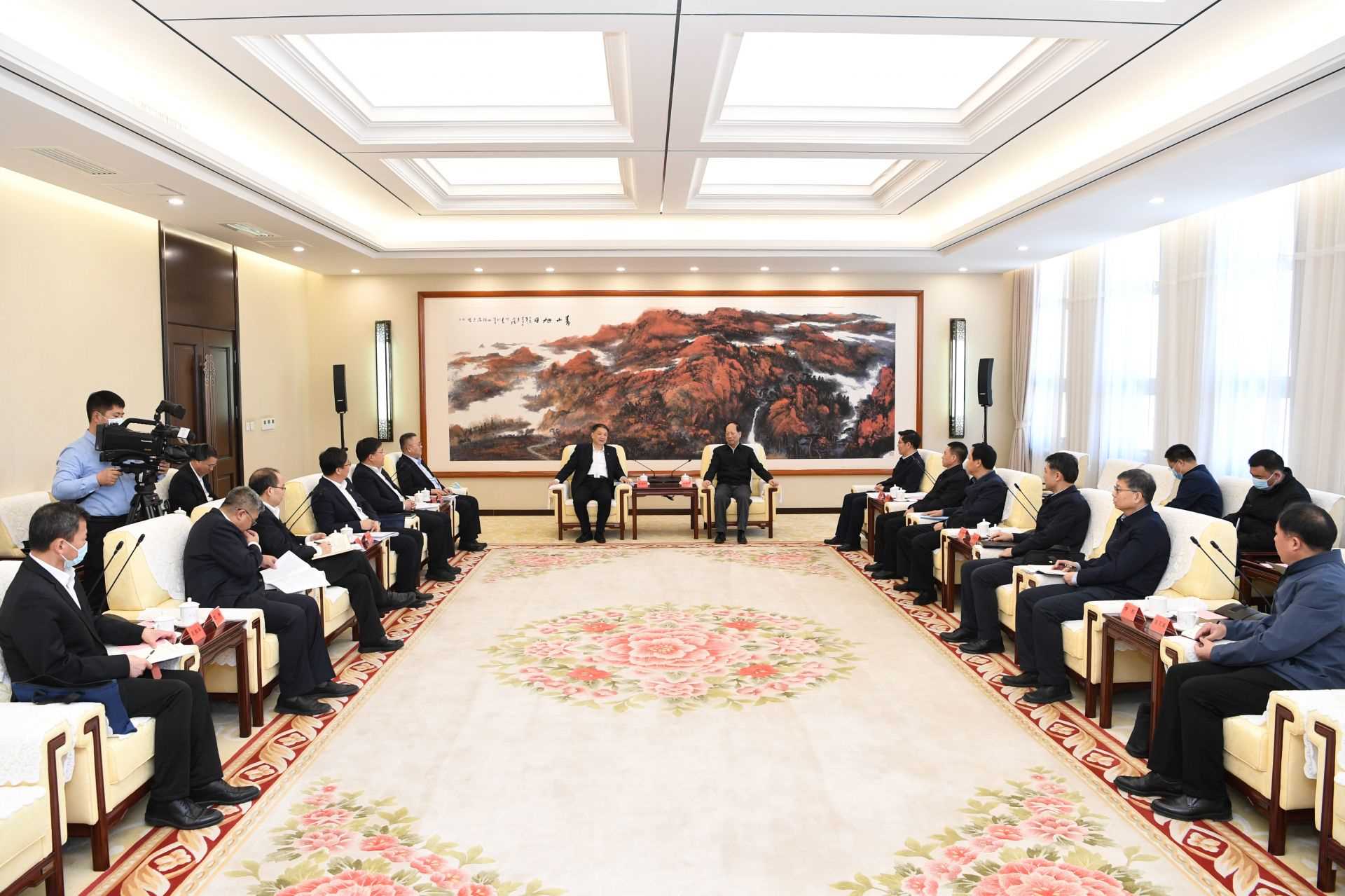 2月14日,自治區(qū)黨委書記、人大常委會主任石泰峰在呼和浩特會見中國華電集團黨組書記、董事長溫樞剛。記者袁永紅攝