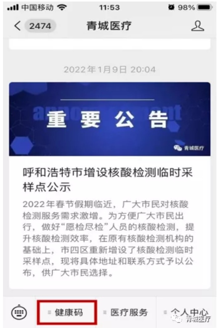 最近有呼和浩特市民反映不能及時(shí)在“青城醫(yī)療”健康碼上查詢(xún)到核酸檢測(cè)結(jié)果,建議大家執(zhí)行如下操作: