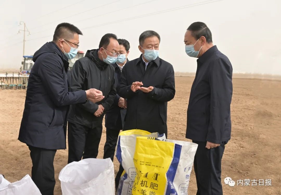 3月22日上午,自治區(qū)黨委書記孫紹騁在巴彥淖爾市調(diào)研五原縣新公中鎮(zhèn)萬畝糧食種植園區(qū)糧食種植情況。內(nèi)蒙古日報(bào)社融媒體記者 馬建荃 攝
