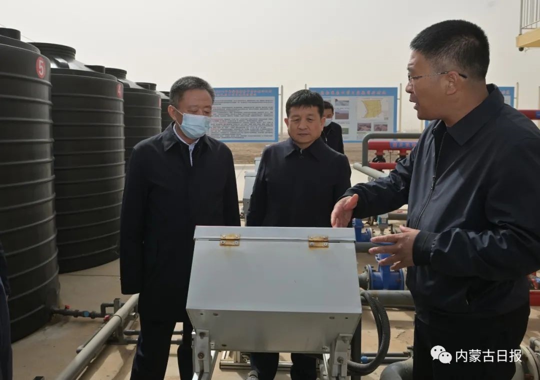 3月22日上午,自治區(qū)黨委書記孫紹騁在巴彥淖爾市調(diào)研烏拉特前旗新安鎮(zhèn)樹林子村高標(biāo)準(zhǔn)農(nóng)田科技示范區(qū)黃河水澄清滴灌項(xiàng)目。內(nèi)蒙古日報(bào)社融媒體記者 馬建荃 攝
