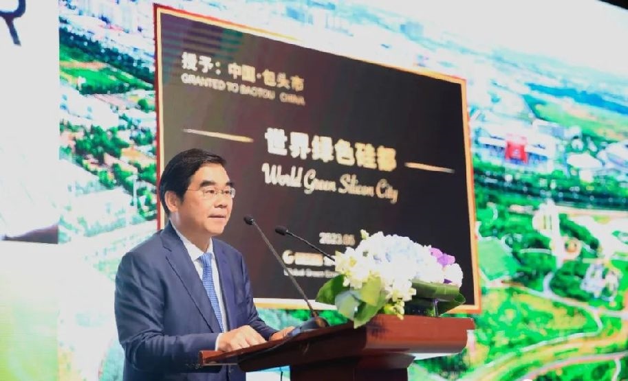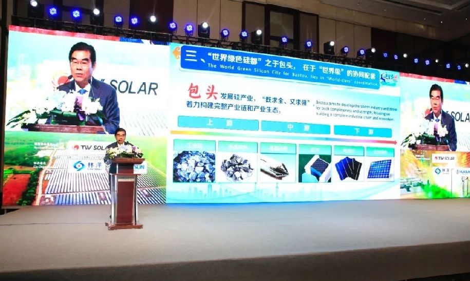國際太陽能光伏與智慧能源大會是全球規(guī)模最大、最具影響力的專業(yè)化國際化光伏盛會,對于世界能源變革、全球生態(tài)環(huán)境改善具有重要引領(lǐng)作用。丁繡峰代表市委、市政府向大會的召開表示熱烈的祝賀,向所有關(guān)心支持包頭發(fā)展的企業(yè)家、專家學(xué)者和各界人士表示衷心的感謝。他說,全球綠色能源理事會為包頭市頒授“世界綠色硅都”稱號,我們深感榮幸、倍感振奮。“世界綠色硅都”之于包頭,在于“世界級”的產(chǎn)業(yè)規(guī)模,2022年包頭成為全國首個光伏產(chǎn)業(yè)產(chǎn)值超千億元的城市,預(yù)計今年底多晶硅、單晶硅產(chǎn)能將分別占到全國的40%,2025年將分別占到全國的半壁江山、占到全球的45%,我們將繼續(xù)擴(kuò)大光伏硅優(yōu)勢,建設(shè)全球最大的晶硅材料生產(chǎn)基地,打造萬億級光伏產(chǎn)業(yè)集群,建設(shè)千億級半導(dǎo)體產(chǎn)業(yè)集群和有機硅產(chǎn)業(yè)集群?!笆澜缇G色硅都”之于包頭,在于“世界級”的綠電支撐,包頭風(fēng)光資源豐富,可為硅產(chǎn)業(yè)發(fā)展提供“綠色電、便宜電、可靠電”,到2025年全市光伏產(chǎn)業(yè)使用“綠電”比例將達(dá)到40%以上,為企業(yè)通過“碳足跡”認(rèn)證、進(jìn)軍歐盟等國際光伏市場拿到綠色通行證。“世界綠色硅都”之于包頭,在于“世界級”的協(xié)同配套,包頭發(fā)展硅產(chǎn)業(yè)從一開始就本著“既求全、又求強”的原則,目前已形成從工業(yè)硅到多晶硅、單晶硅,再到切片、電池片、組件的完整光伏產(chǎn)業(yè)鏈,我們將繼續(xù)抓好產(chǎn)業(yè)成龍配套,保證光伏產(chǎn)業(yè)鏈各環(huán)節(jié)都有頭部企業(yè)集聚,使包頭成為全國乃至全球光伏產(chǎn)業(yè)鏈最完整、配套率最高的城市?!笆澜缇G色硅都”之于包頭,在于“世界級”的技術(shù)研發(fā),云集包頭的硅產(chǎn)業(yè)頭部企業(yè)都擁有著引領(lǐng)行業(yè)前沿的技術(shù)優(yōu)勢,是包頭硅產(chǎn)業(yè)屹立全球行業(yè)前沿的硬支撐,我們將加速創(chuàng)新鏈與產(chǎn)業(yè)鏈融合發(fā)展,使包頭成為具有全球影響力的硅產(chǎn)業(yè)先進(jìn)技術(shù)研發(fā)中心、認(rèn)證中心、檢測中心、推廣中心。