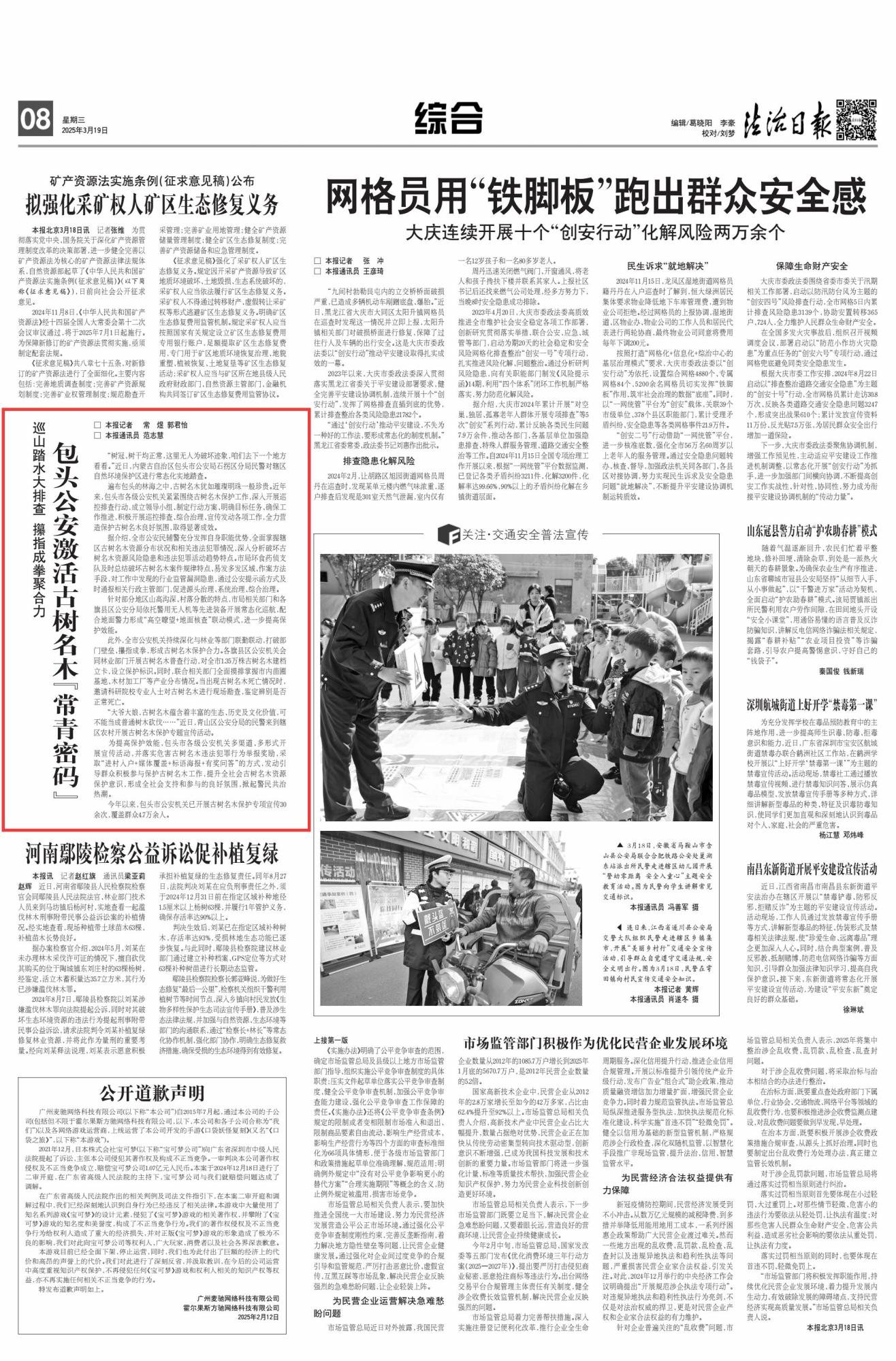 2025年3月19日,《法治日報》第8版刊發(fā)題為《巡山踏水大排查 攥指成拳聚合力 包頭公安激活古樹名木“常青密碼”》的文章,報道了近年來,包頭市各級公安機(jī)關(guān)緊緊圍繞古樹名木保護(hù)工作,深入開展巡控排查行動,成立領(lǐng)導(dǎo)小組、制定行動方案、明確目標(biāo)任務(wù)、確保工作推進(jìn),積極開展巡控排查、綜合治理、宣傳發(fā)動各項工作,全力營造保護(hù)古樹名木良好氛圍,取得顯著成效。
