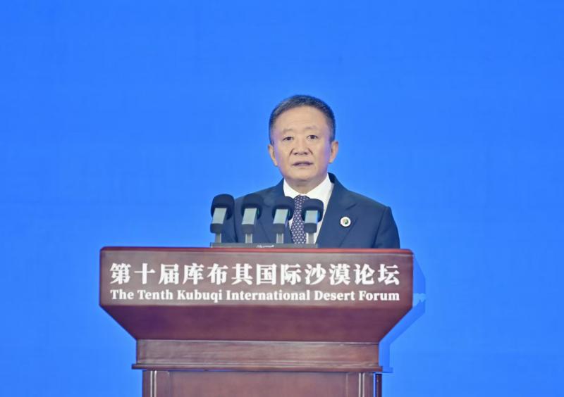 9月16日,國家林業(yè)和草原局局長劉國洪在第十屆庫布其國際沙漠論壇開幕式上致辭。草原云·內(nèi)蒙古新聞網(wǎng)記者 馬建兵 攝