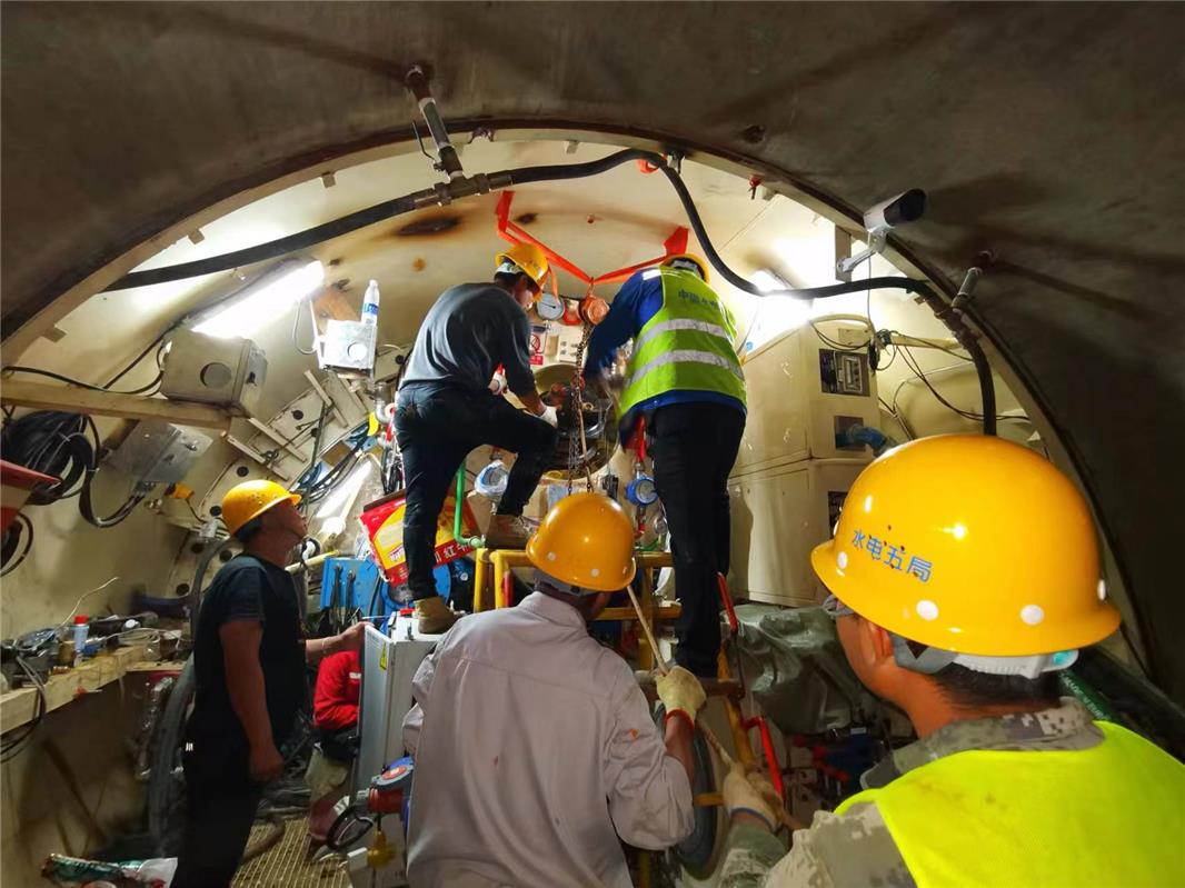 工人在高壓艙內(nèi)進行更換刀頭作業(yè)。