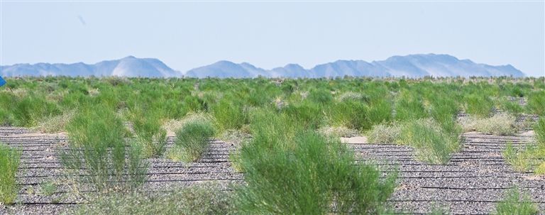 “這里是內(nèi)蒙古阿拉善盟西部荒漠綜合治理項(xiàng)目(二期)額濟(jì)納河片區(qū),是內(nèi)蒙古深入貫徹落實(shí)國(guó)家生態(tài)戰(zhàn)略、打贏河西走廊—塔克拉瑪干沙漠邊緣阻擊戰(zhàn)關(guān)鍵戰(zhàn)場(chǎng)之一。我們?cè)谶@里人工種草6萬(wàn)畝,現(xiàn)在已經(jīng)全部完成栽種,正在進(jìn)行養(yǎng)護(hù)工作?!鳖~濟(jì)納河片區(qū)負(fù)責(zé)人關(guān)新偉介紹,項(xiàng)目由阿拉善盟林業(yè)和草原局推進(jìn),中國(guó)建筑一局有限公司、中鐵四局集團(tuán)有限公司等承建,額濟(jì)納旗林業(yè)和草原局為項(xiàng)目建設(shè)提供技術(shù)支撐。