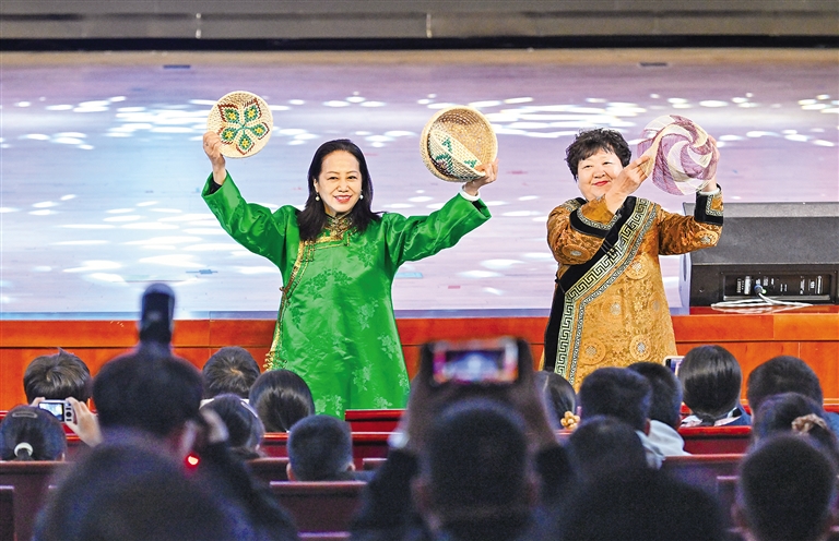 對接會設(shè)在北京一零一中學(xué)圓明園校區(qū),現(xiàn)場,內(nèi)蒙古特色非遺、歌舞表演異彩紛呈,鮮活展現(xiàn)絢爛多彩的北疆文化。北京交通大學(xué)現(xiàn)代旅游研究學(xué)院院長張輝作“研學(xué)旅游高質(zhì)量發(fā)展”主旨演講。自治區(qū)文旅廳發(fā)布了2025年研學(xué)旅游新品,重磅推出深度融合內(nèi)蒙古的自然地理、歷史文化、科學(xué)技術(shù)與民族風(fēng)情的4條主線、20條支線的研學(xué)旅行路線,還系統(tǒng)推出一批具有地域特色與文化內(nèi)涵的精品主題研學(xué)旅游產(chǎn)品,全方位展示了內(nèi)蒙古研學(xué)旅游的獨特魅力和發(fā)展?jié)摿?。?nèi)蒙古藝術(shù)劇院烏蘭恰特藝術(shù)培訓(xùn)中心推介了北疆文化藝術(shù)研學(xué)產(chǎn)品;中國鐵路呼和浩特局發(fā)布京蒙研學(xué)旅游專列計劃,并進(jìn)行京蒙兩地研學(xué)公司客源互通簽約儀式;中國旅游協(xié)會研學(xué)旅行分會與內(nèi)蒙古自治區(qū)旅游協(xié)會進(jìn)行合作簽約。活動還設(shè)置“少年那達(dá)慕”互動體驗,吸引不少青少年現(xiàn)場打卡體驗北疆文化?!皟?nèi)蒙古是一個自然與人文交織的遼闊課堂,期待走進(jìn)內(nèi)蒙古,用腳步丈量、用心靈感受內(nèi)蒙古。”北京教育學(xué)院豐臺分院附屬學(xué)校學(xué)生高晟恩說。