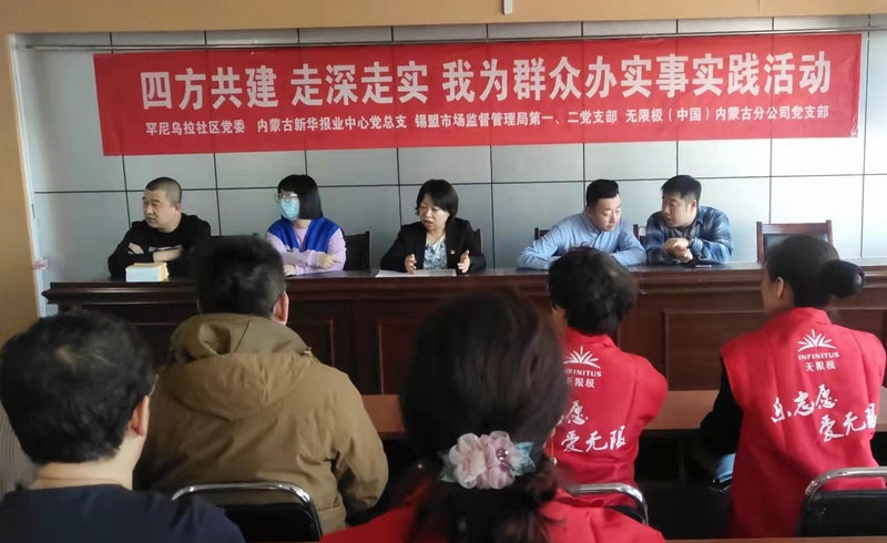 北疆新聞網(wǎng)、北疆新聞APP、北疆云消息 為慶祝中國(guó)共產(chǎn)黨成立100周年,將“我為群眾辦實(shí)事”落到實(shí)處,12月8日,內(nèi)蒙古新華報(bào)業(yè)中心黨總支、無(wú)限極(中國(guó))內(nèi)蒙古分公司黨支部,聯(lián)合罕尼烏拉社區(qū)黨委、錫林浩特市市場(chǎng)監(jiān)督管理局第一、第二黨支部,走進(jìn)錫林浩特市罕尼烏拉社區(qū),開(kāi)展“四方共建 走深走實(shí) 我為群眾辦實(shí)事”主題實(shí)踐活動(dòng)。20名黨員干部與志愿者代表齊聚一堂,開(kāi)展黨史學(xué)習(xí),重溫紅色歷史,并針對(duì)優(yōu)化營(yíng)商環(huán)境、黨建經(jīng)驗(yàn)進(jìn)行了互動(dòng)交流,共話黨建工作的重要意義。座談會(huì)上,黨員干部暢所欲言,氣氛熱烈。