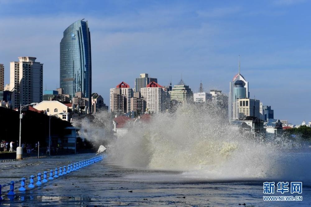 7月25日在山東省青島市澳門路海邊拍攝的巨浪。 受今年第6號臺風(fēng)“煙花”影響,山東省青島市風(fēng)力逐漸加大,沿海出現(xiàn)巨浪。新華社發(fā)(王海濱 攝) -